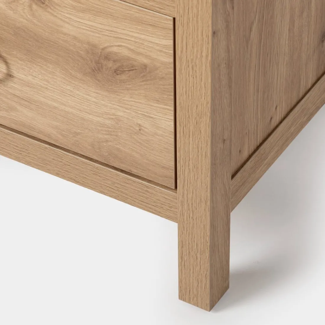 ¡Aprovéchate de este pack! La mesita de noche en madera color natural Livorno es ideal para crear un dormitorio cálido y acogedor. Sus tres amplios cajones, serán tus aliados para mantener tu espacio en orden. Combínala con otros muebles de la misma colección y consigue un look completo y armonioso en tu dormitorio.