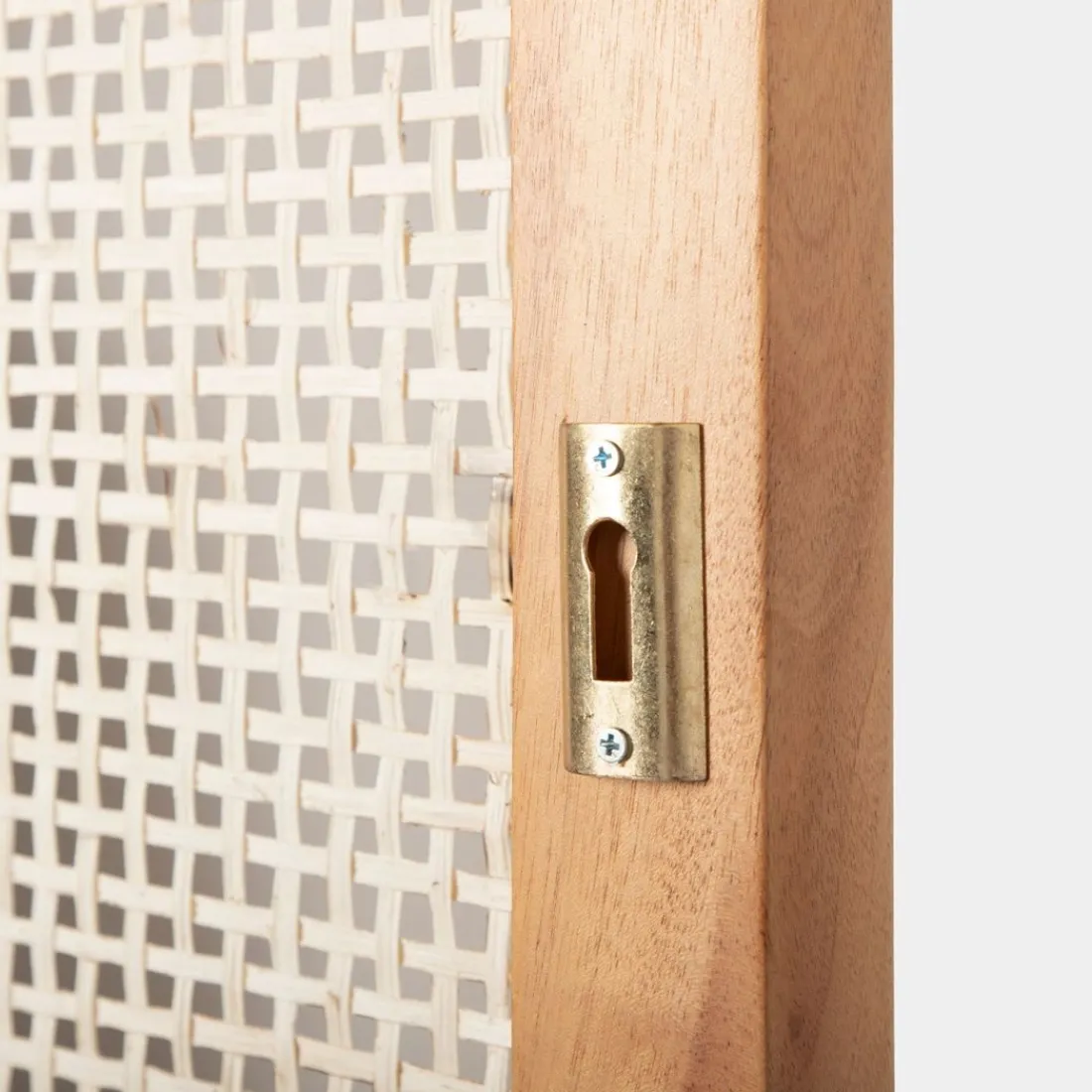 El cabecero de cama Nera en madera maciza y ratán natural aportará calidez y calma a tu dormitorio. El ratán ha sido trenzado a mano, por lo que puede presentar alguna irregularidad propia de la naturaleza del material y del proceso de fabricación artesanal. Se puede utilizar en camas de 135, 150 y 160. Requiere anclaje a pared. La tornillería no está incluida.