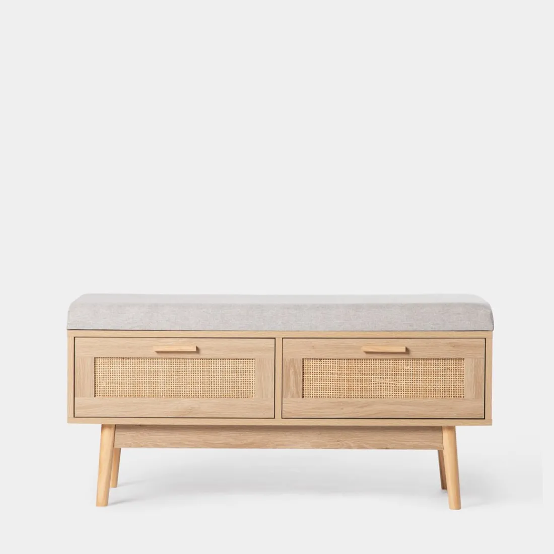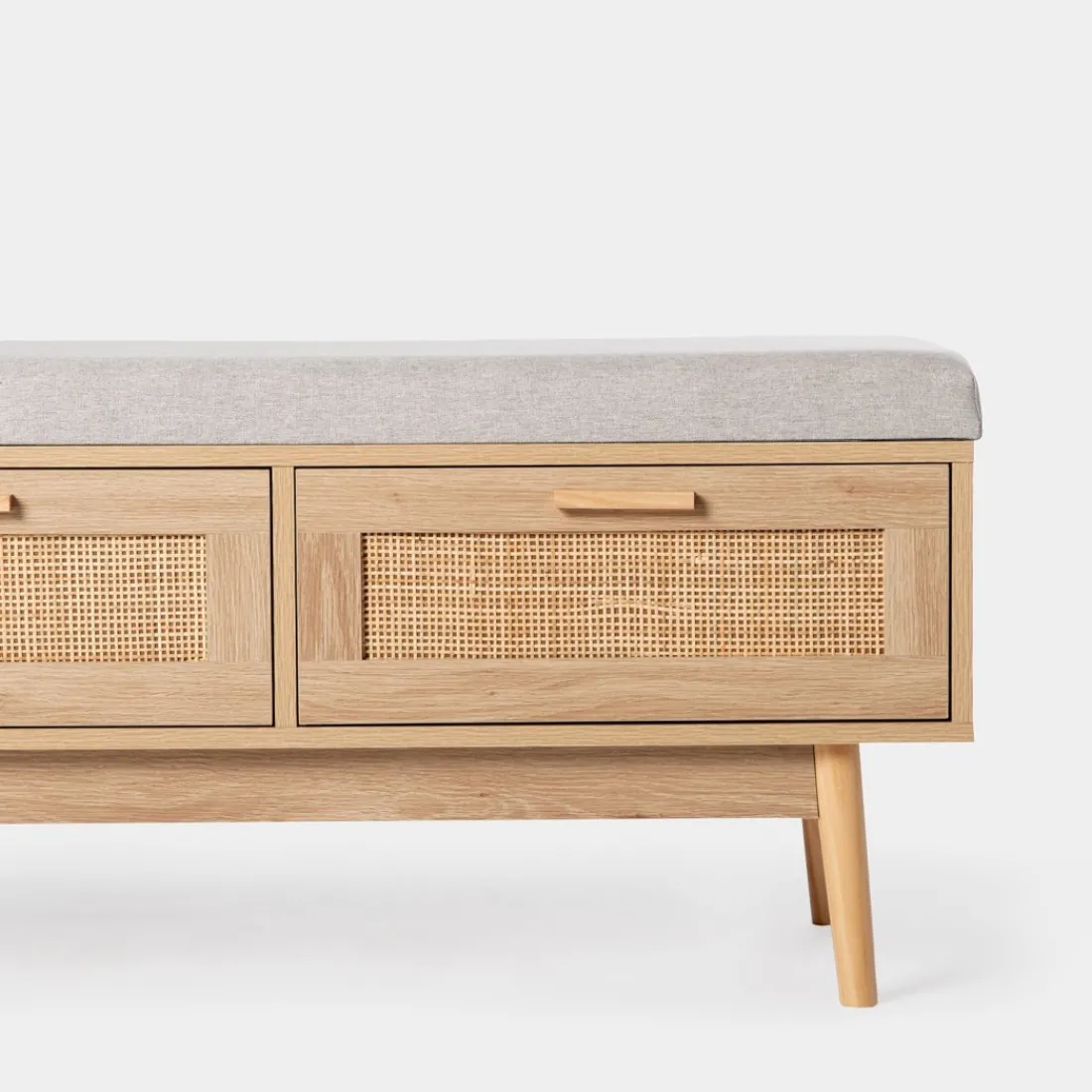 El banco en ratán natural con cojín Tahiti aportará un toque natural ideal a tu salón, recibidor o dormitorio. Cuenta con un mullido cojín que le aporta un extra de confort y con dos amplios cajones con los que ganarás espacio extra de almacenamiento. Combínalo con los muebles del resto de la colección y ¡consigue un efecto wow!