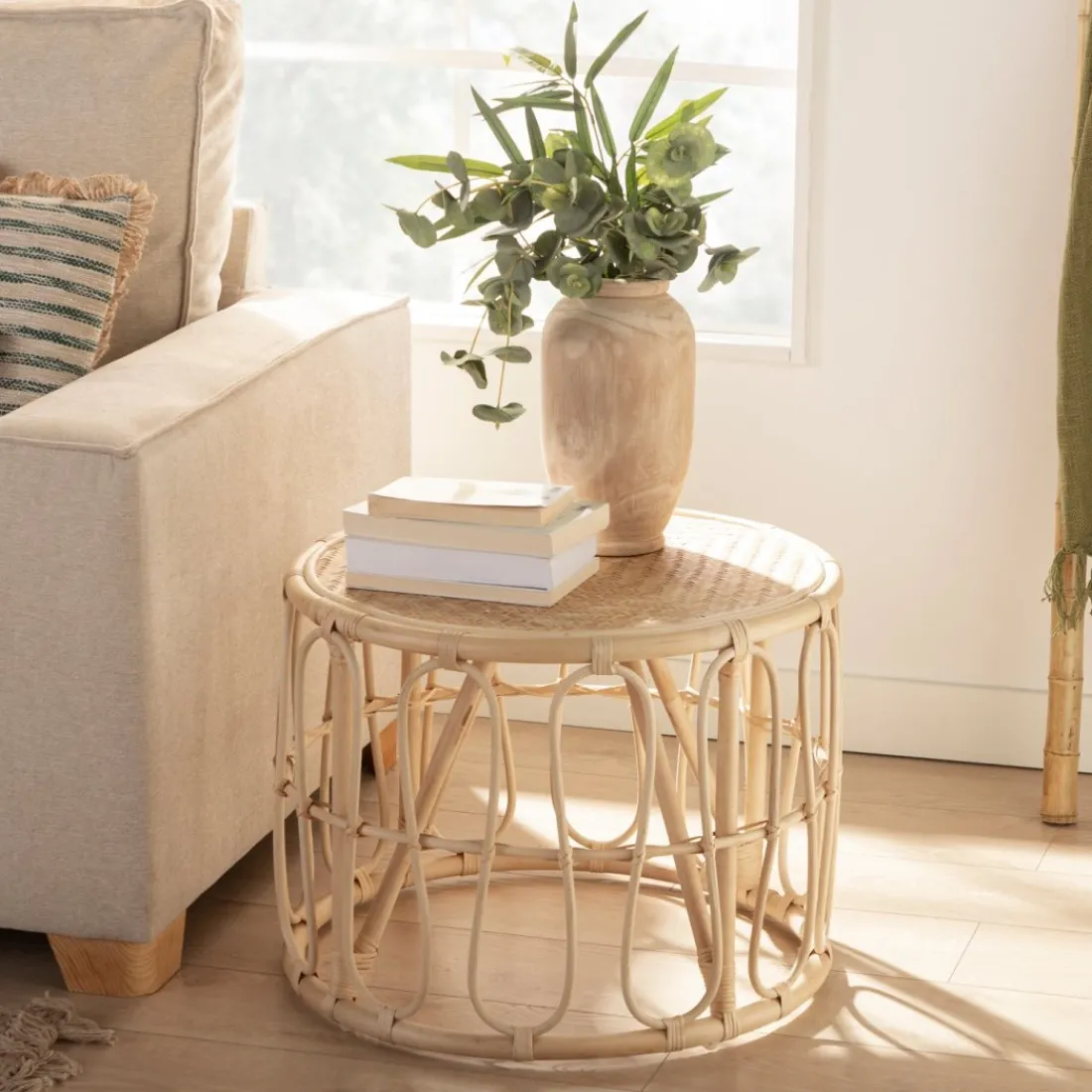 Con la mesa de centro de ratán natural Nura conseguirás crear un ambiente acogedor y natural. Gracias a sus dimensiones la puedes utilizar tanto como mesa auxiliar como mesa de centro. Ha sido fabricada artesanalmente con ratán natural, por lo que puede presentar ligeras irregularidades y variaciones en el color.