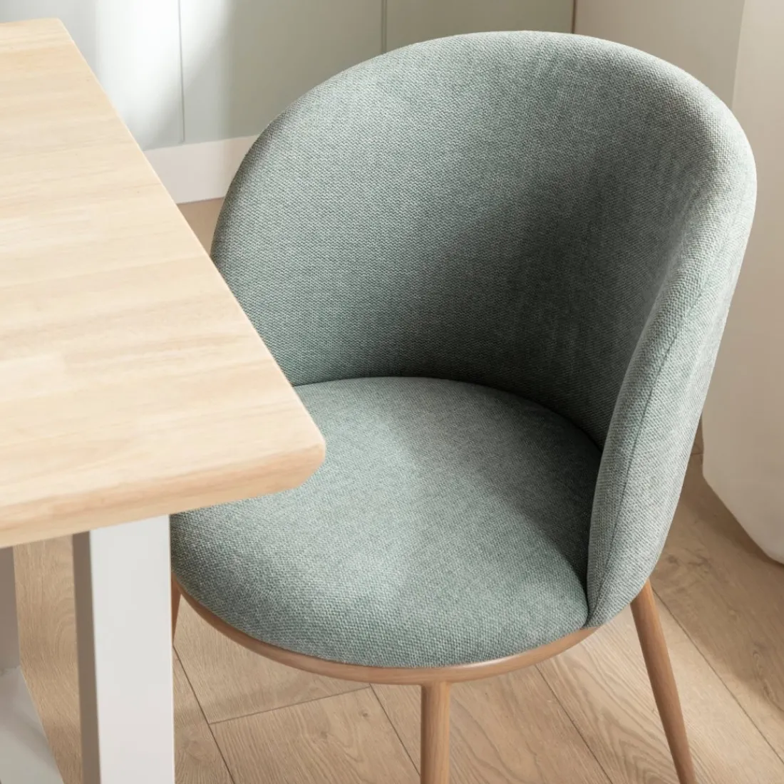 La silla de comedor Nolan tapizada en menta con pata natural es la pieza ideal para completar la decoración de tu hogar. Su respaldo curvado envuelve a la perfección la espalda y aporta una gran sensación de confort y comodidad. Está disponible en una amplia gama de tonos, escoge el que más te guste y crea un espacio lleno de encanto