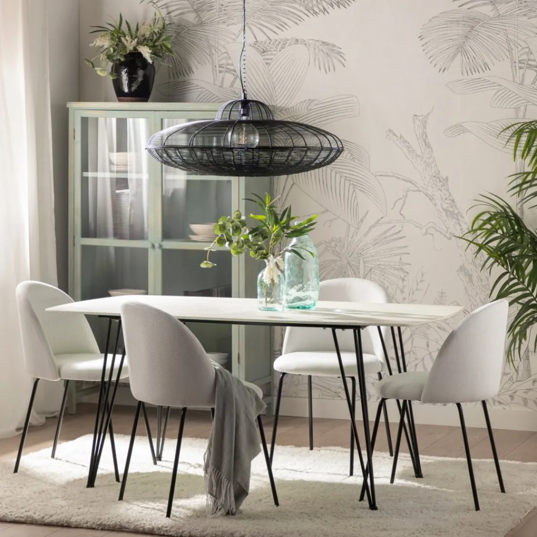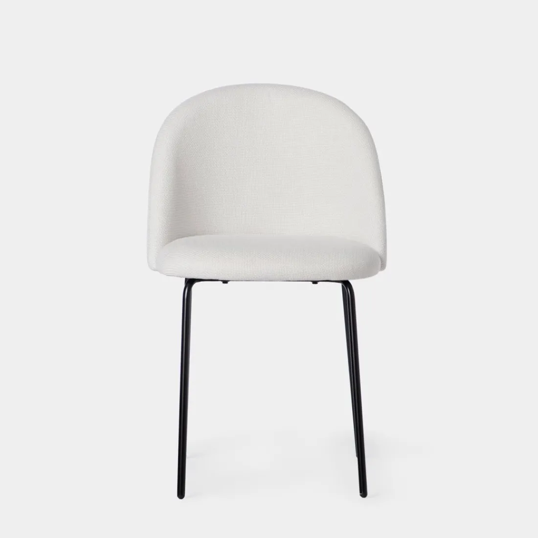 La silla de comedor Olivia tapizada en perla y pata metálica negra tiene un diseño elegante y sencillo inspirado en los años 50. Su respaldo corto y redondeado unido al diseño de sus patas cónicas despuntadas recuerdan a esos modelos de sillería sofisticados y funcionales adaptables a cualquier estilo. Elige entre una de nuestras tonalidades de tapizados disponibles y haz de esta silla un elemento distintivo de tu salón, comedor o escritorio.