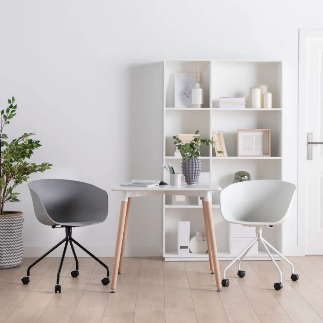 La silla de escritorio Chess gris es ideal para dar un aire elegante y sofisticado al espacio de trabajo o estudio de tu casa. Este diseño minimalista con respaldo ergonómico fabricado en polipropileno y patas en metal en el mismo color te permitirá realizar tus tareas durante horas sin tener que renunciar a la comodidad. Elige entre uno de los 2 colores disponibles y haz de tu lugar de trabajo un rincón con estilo. Para su uso correcto, quitar el freno de las patas, la silla cuenta ruedas giratorias y asiento fijo.