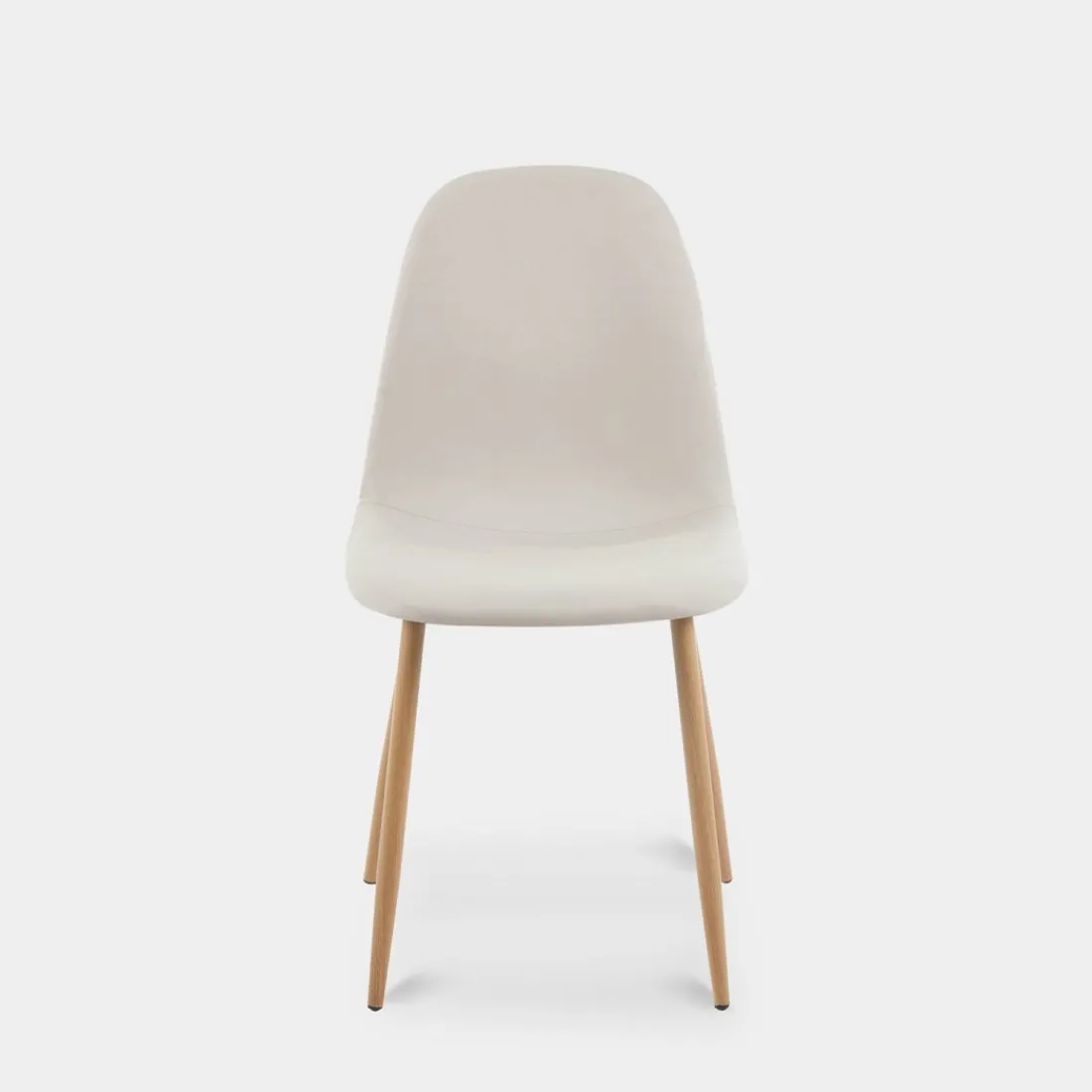 La silla de comedor Elia, tapizada en sofisticada polipiel beige y con patas metálicas efecto madera, es la elección perfecta para completar tu hogar. Su diseño sencillo y minimalista aporta un toque de elegancia a cualquier espacio. Gracias a su ergonomía, es ideal tanto para el comedor como para el escritorio, garantizando comodidad y estilo. Disponible en una variedad de tapizados, escoge el que mejor encaje con tu estilo.