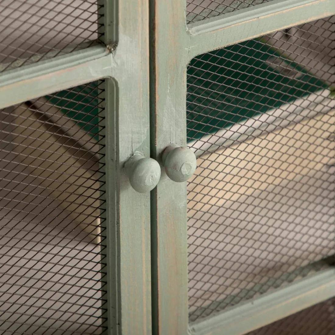 La vitrina Folk, fabricada en madera reciclada libre de tratamientos químicos, fusiona la belleza del estilo natural con la sostenibilidad del upcycling. Cada pieza elaborada artesanalmente, cuenta una historia única a través de sus imperfecciones y aporta carácter al dormitorio. Destacan sus dos puertas, adornadas con una malla metálica que aporta un toque rústico y encantador. Para mayor estabilidad del mueble, aconsejamos su anclaje a la pared.